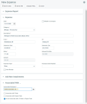 The expense page opens, with the Associated Organization, Ticket, Project and Task fields populated.