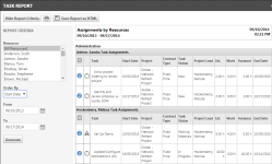 Details about tasks, tickets and regular time for specified resource(s) and a specified date range, sorted by resource or organization and project. This report shows both pre-billed and billed work. |
