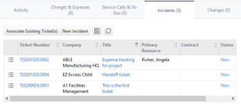 On the Incidents tab of problem and change request tickets, you create and manage associated incident tickets. To open the page, use the path(s) in the Security and navigation section above.