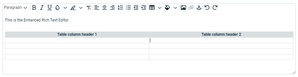 An enhanced version of the Rich Text editor with additional formatting tools is available for the Content section of