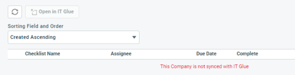 - If there are no checklists because the organization is not synched with IT Glue, this is stated in Autotask.
