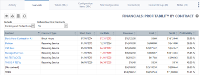 About the Financials: Profitability by Contract report