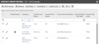 - Use the column filters or Advanced Filter to locate the contacts you want to remove. Refer to Using the advanced filter.