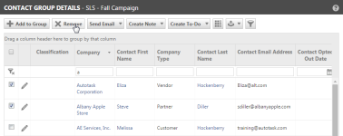 Send Email | From the Contact Group Detail, you can select a contact action to execute, that is, send emails, create notes, or create to-dos. When you select a contact action, the Contact Action page opens to execute the selected actions for the entire group of for selected contacts. For details refer to Creating and executing contact actions. |