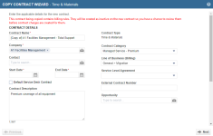 NOTE   For recurring service contracts only: if you have a recurring service contract that will end soon, and you want to use the same contract again for the same customer, you can renew the contract instead of copying it. Refer to Renewing a recurring service contract.