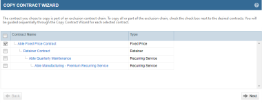 3. If the contract you are copying has one or more exclusion contracts, you'll be prompted to select which, if any, associated exclusion contracts you want to make copies of, as well.