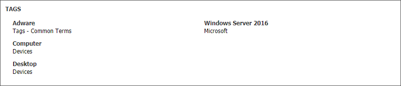 The Tags section lists all of the tags currently associated with the ticket, along with the categories to which the tags belong.