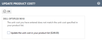 Multi-currency considerations: If Multi-currency is enabled, the Freight and Unit Cost fields will display the currency indicator in the vendor currency. The fields are read-only if the vendor currency and the internal currency are the same. If the vendor currency is different, hovering over the currency indicator will display the amount in the internal currency, as calculated by the exchange rate for the currency pair. The Update Product Cost? dialog will only appear if the vendor currency and the internal currency are the same. |