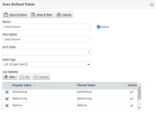 - Click New to open the User-Defined Fields page, or right-click and select Edit to edit an existing UDF.