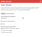 • Do Not Import Article: Articles with a category that do not match an existing category will not import.