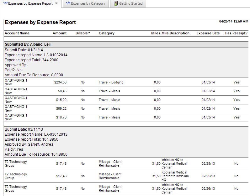 Description A list of submitted Expense Reports based on the selected criteria. The amount column in the report shows the total for the related Expense Report.