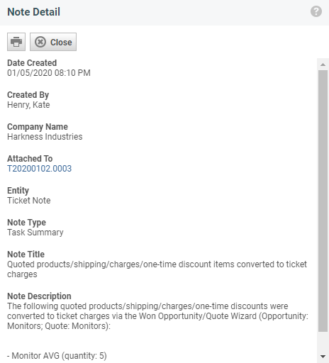 TIP  If there is a ticket or task associated with the note, access it by clicking the link under Attached To.