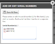 - If you are canceling serialized products, click Add or Edit in the Serial Number(s) column. This opens the Edit Serial Numbers dialog.