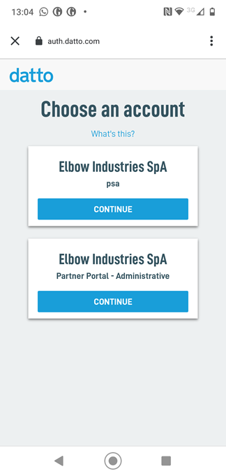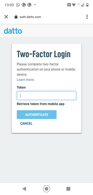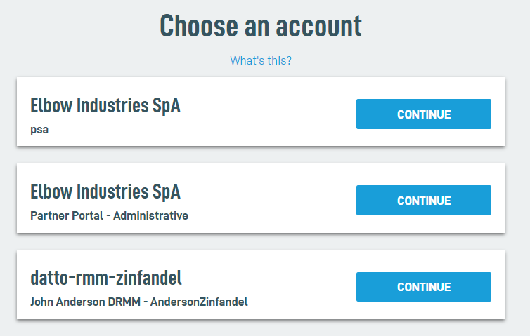 - Click Continue. You are automatically redirected to auth.datto.com/login.