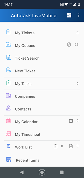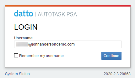 - Click Continue on the tile for the Autotask application to open Autotask.