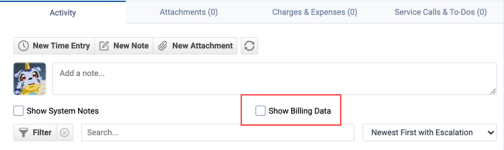 This check box toggles the display of the Show Billing Data check box on the Activity feed, to prevent the resource from seeing any billing data.
