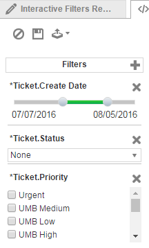These filters are configured on the Filters tab of the Report Viewer Options window. A check box determines if a filter is initially hidden or displayed. For information on how to configure this setting, refer to Initially Display Filter on Panel.
