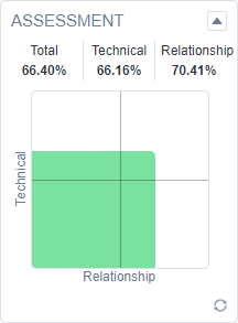The chart is a visual representation of the technical and relationship assessment scores for the opportunity, with the technical score represented on the Y-axis and the Relationship score represented on the X-axis. For more information on the graph, refer to Reading the assessment graph.