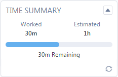 This insight displays the total amount of time worked on the ticket and compares it with the estimated time. If the Estimated Hours field is populated, a progress bar is displayed indicating how worked hours compare to estimated hours. If the ticket is associated with a Taskfire ticket, the Taskfire hours and a total of the service provider and Taskfire hours are displayed separately. |