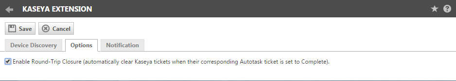 To open the page, use the path(s) in the Security and navigation section above. The Device Discovery adapter has three tabs, Device Discovery, Options, and Notifications.