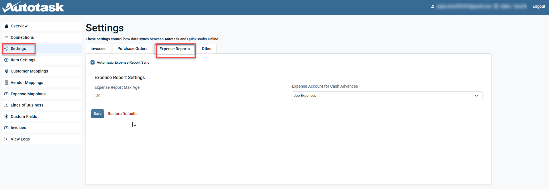 All approved expense reports in Autotask are eligible for sync. The integration checks for unsynced reports based on a configurable number of days. An expense report is considered "unsynced" if it's approved and its QuickBooks Reference Number field is blank.