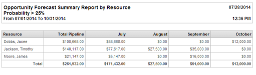 Opportunity forecast summary by resource