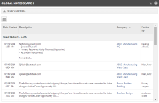 Search for any note in Autotask. This search can be filtered by organization, action type, note type, entity the note is attached to, note creator and date range. It is also limited by the user's security level. |