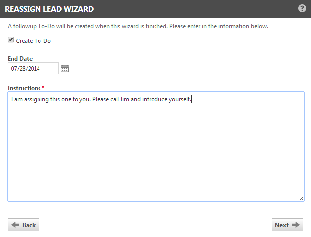 1. To create a to-do for the newly assigned resource, complete the Instructions field, and edit the Due Date, if desired. Click Next.
